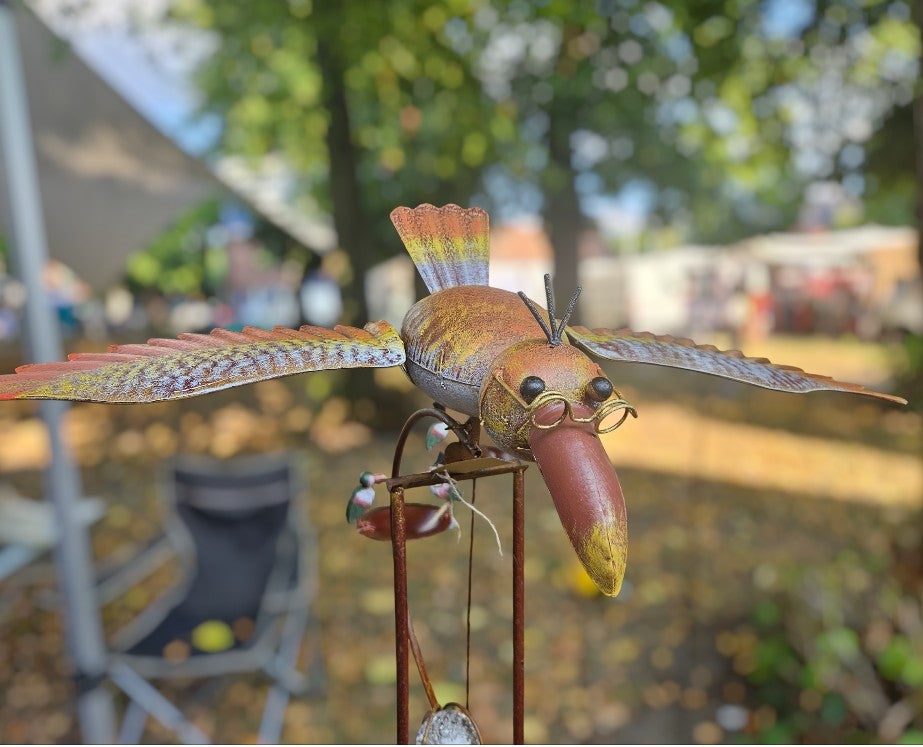 Gemaakt van stevig en weerbestendig materiaal, zodat je er het hele jaar door plezier van hebt. Of je hem nu plaatst in het gras, bij een vijver of tussen de bloemen, deze raaf brengt beweging, karakter en een vleugje magie in elke tuin. Perfect om zelf van te genieten of om cadeau te doen aan een liefhebber van bijzondere tuindecoratie.